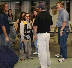 Long Island Rescue, Inc. presented a Special EMS Class, "Technical Rescue Patient Packaging" , for the Miller Place Fire Dept. EMS Company on June 8th, 2006. 20 members learned and practiced using webbing, stokes basket, diamond lashing, hasty harness, diaper harness, LSP half back. The EMS members were introduced to the special packaging considerations and learned what to expect to find when receiving a patient at a Technical Rescue incident. This also familiarized the members of techniques that can be applied to daily EMS incidents as well. For additional information pertaining to "Patient Packaging," please contact Long Island Rescue, Inc. Disclaimer: Although the information set forth in this website is presented in good faith and believed to be correct, the participating writers, procedures, and creators of Long Island Rescue, Inc. or advertisers make no representations or warranties as to the completeness or accuracy thereof. This website is intended for training and information purposes only, as to its suitability for their purposes. In no event is Long Island Rescue, Inc. or its staff responsible for damages of any nature resulting from the use of this information.